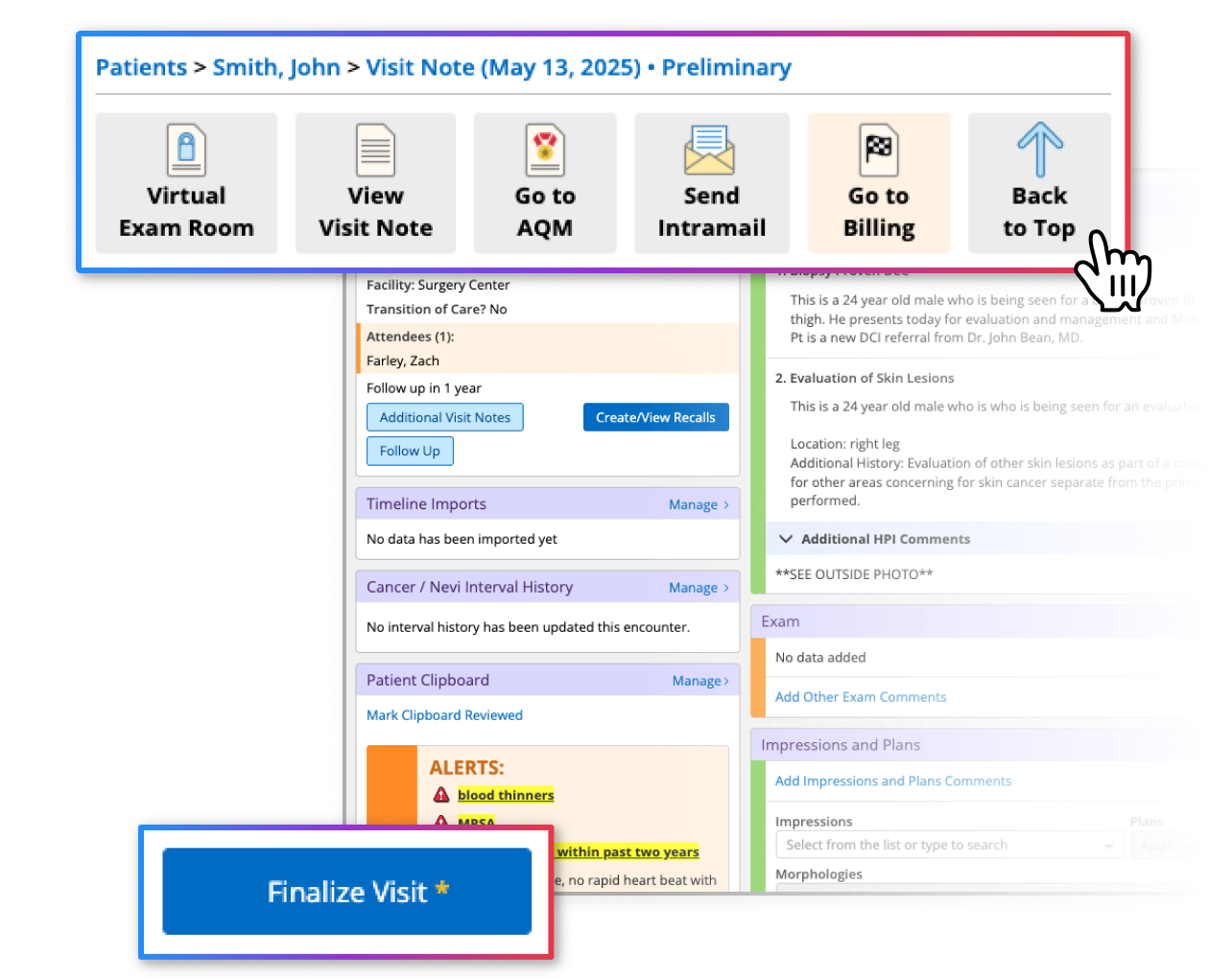 With keyboard shortcuts, you can even jump straight to Billing (Press "B"), HPIs (Press "H"), Exam (Press "E"), and Impressions (Press "I").